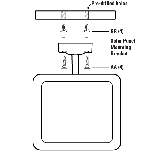 Mark with a pencil, the four pre-drilled holes in the mounting bracket on the wall.